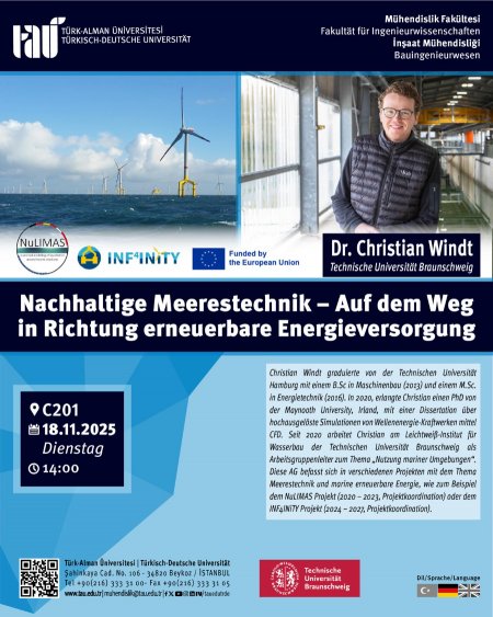 Dr. Christian Windt okulumuzda Sürdürülebilir Açık Deniz Mühendisliği konulu seminer verecek.
